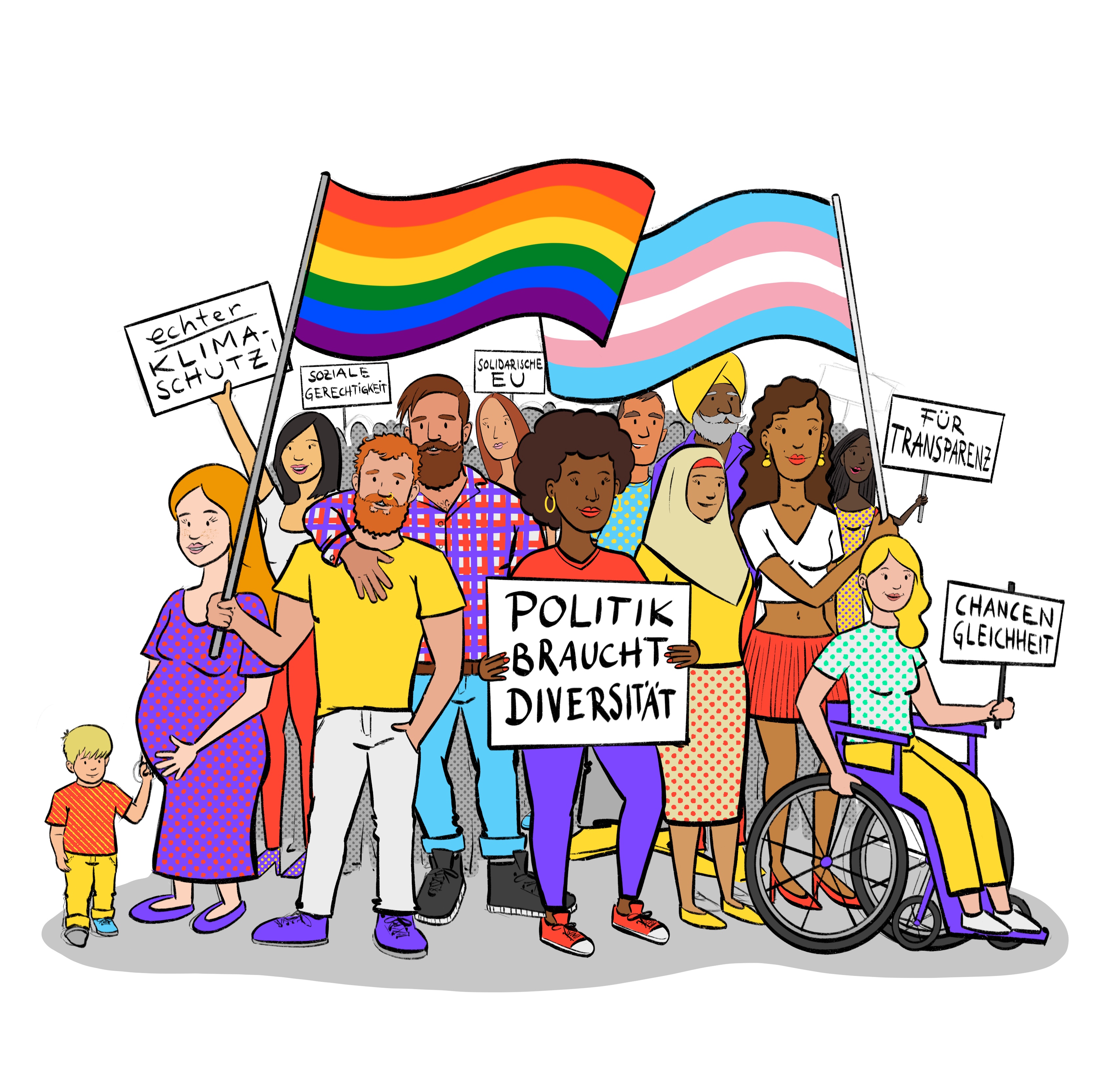Das Key Visual soll die Bewegung widerspiegeln: Multikulturell, divers und inklusiv.